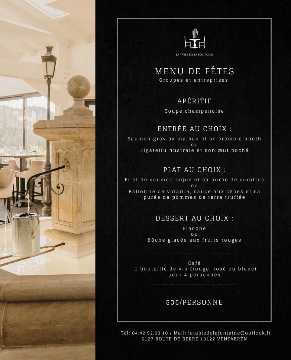 À Ventabren près d’Aix-en-Provence, la cuisine traditionnelle unique du restaurant La Table de la Fontaine s’accompagne d’une cave à vins minutieusement sélectionnés pour vous offrir les accords parfaits.